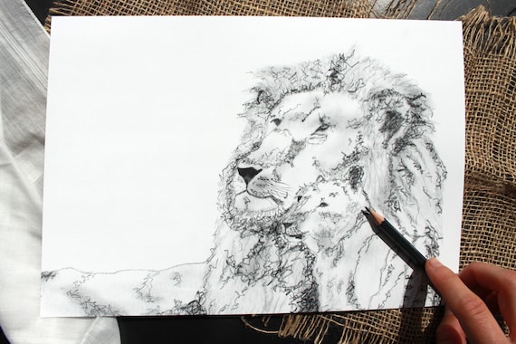 Löwe mit Jungem Bleistiftzeichung Löwendruck Löwenbaby | Etsy