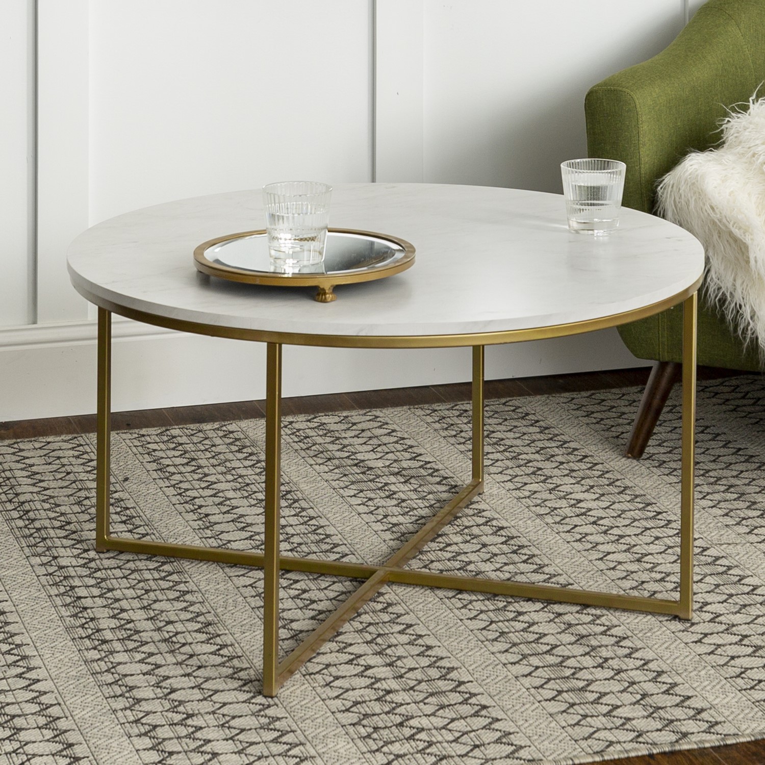Walker Edison Furniture Company 36 In White Gold Medium Round Faux Marble Coffee Table With X Base Hdf36alctmgd The Home Depot